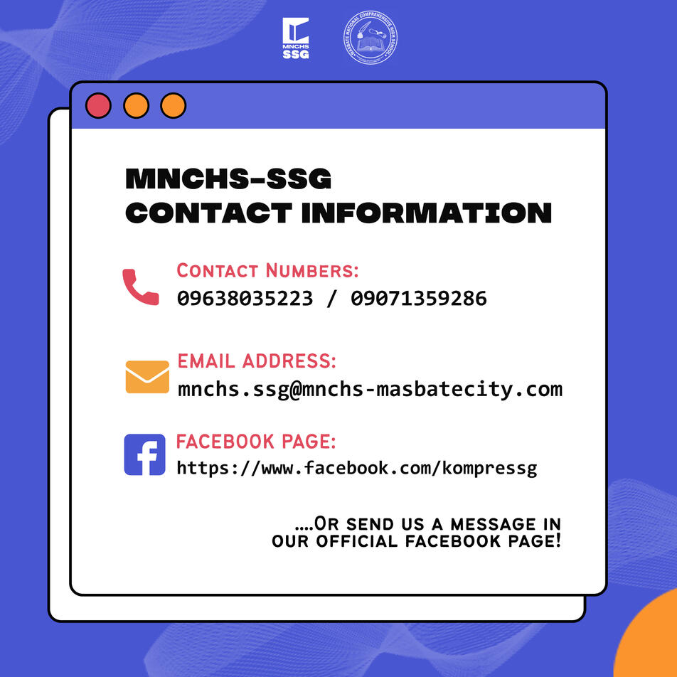 MNCHS-SSG Connect is a channel for every student of Masbate National Comprehensive High School to forward their feedbacks, concerns, and suggestions about their education status.